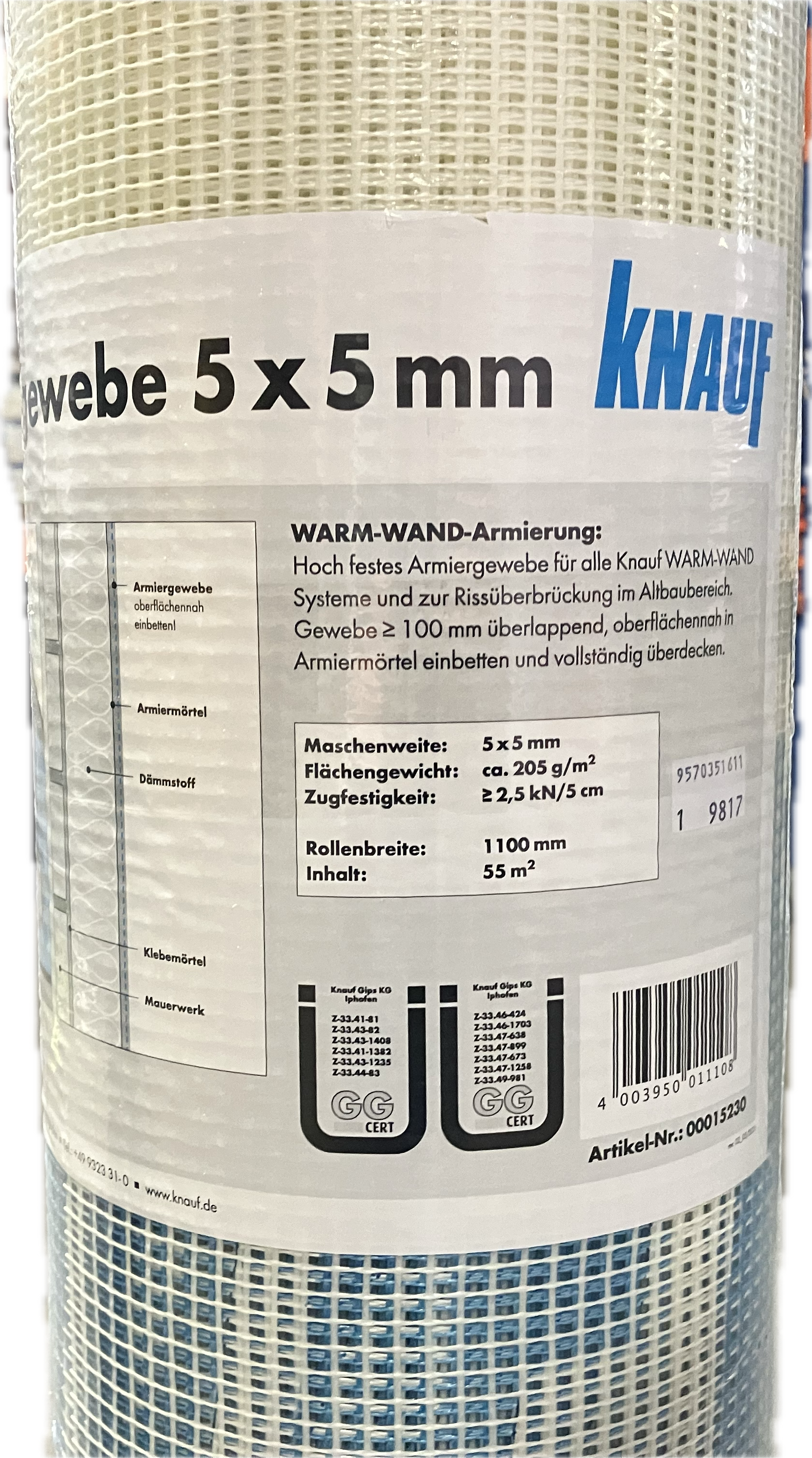 Knauf Armierungsgewebe 5x5 Ro/50x1,10m