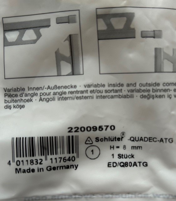 Schlüter Quadec ED/Q80ATG Außenecke 90° Dekorprofil Imitat H=8mm